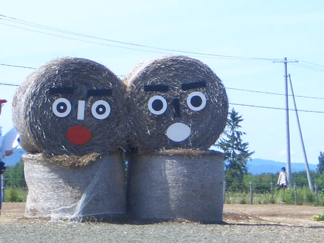 美瑛に行き、ケンとメリーの木、セブンスターの木などを見て回った。 おかしな牧草ロールもあった。売店で