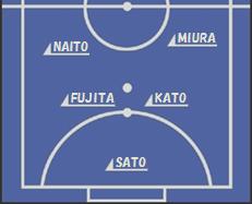 | PIVO(ピヴォ): (00)内藤遼馬 3三浦篤 FIXO(フィクソ): 5加藤礼一郎 7藤田英明 GK(ゴレイロ): 16佐藤俊太郎 | |