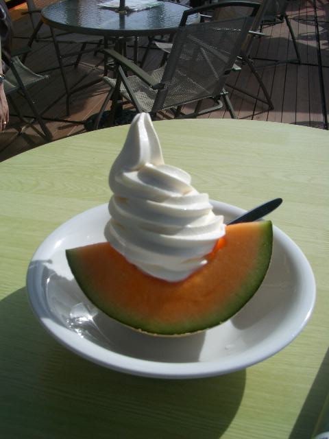 という夕張メロンにソフトクリームを乗せたゴージャスなデザートを食べた。
