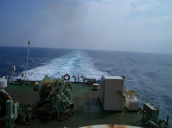 10時くらいに起床し、また船内を探検していた。船内が飽きたので、デッキに出て海を眺めていた。 潮風がすごく強かった・・・ 夕刻に高知新港に着き、バイクの固定ロープをはずし、