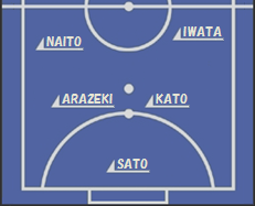 | PIVO(ピヴォ): (00)内藤遼馬 (24)岩田圭介 FIXO(フィクソ): G荒関利信 D加藤礼一郎 GK(ゴレイロ): O佐藤俊太郎 | |